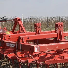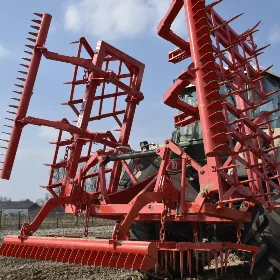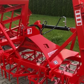 Châssis acier S355, Disques 510mm acier trempé, bore 50 HRC, ressorts indépendants renforcés 100x13x10 ; deux rangées de disques – distance entre rangées 90 cm, moyeux sans entretien Agrihub, plaques latérales anti projections réglables, herse peigne 1 rangée, rouleau barre arrière, peinture poudre thermolaquée (peinture allemande FreiLacke qualité Gelcoat).